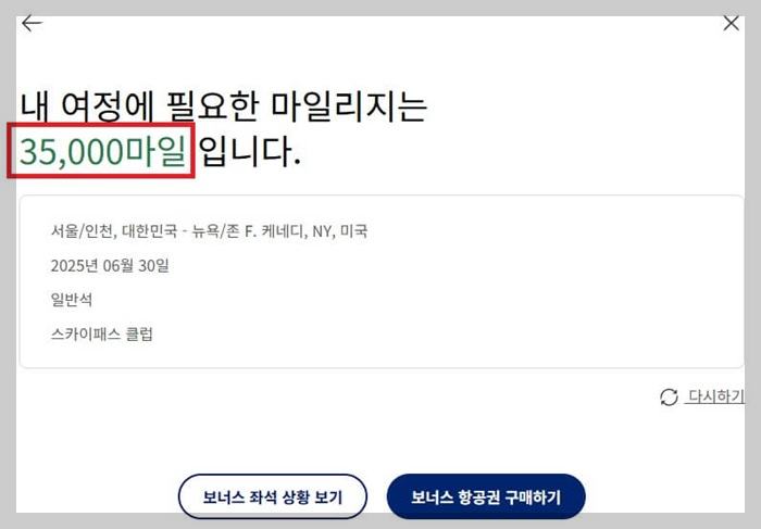 📌항공권 일부금액 마일 사용 (캐시 앤 마일즈)