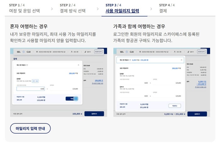 1. 본인의 보유 마일리지만 사용 (가족 합산은 불가)