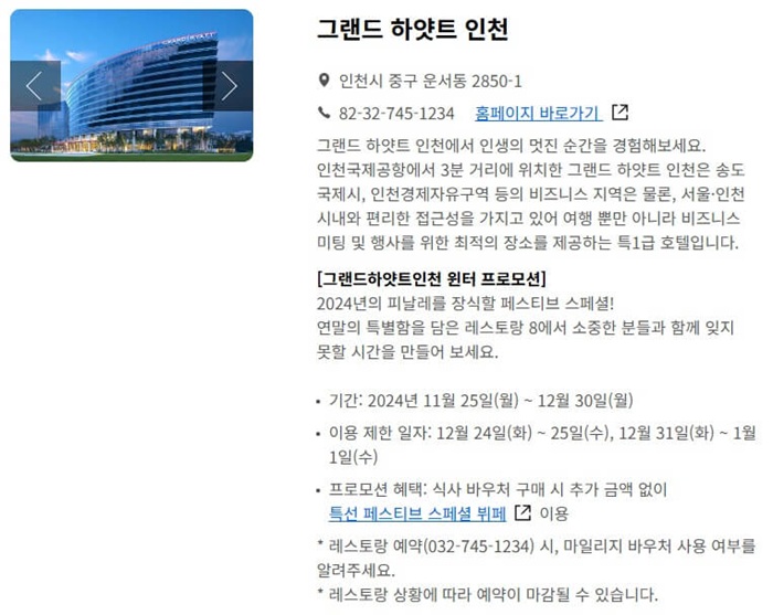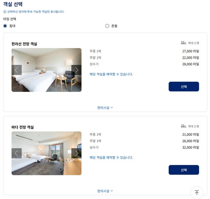 대한항공 마일리지 사용하여 호텔 숙박이 가능하다.