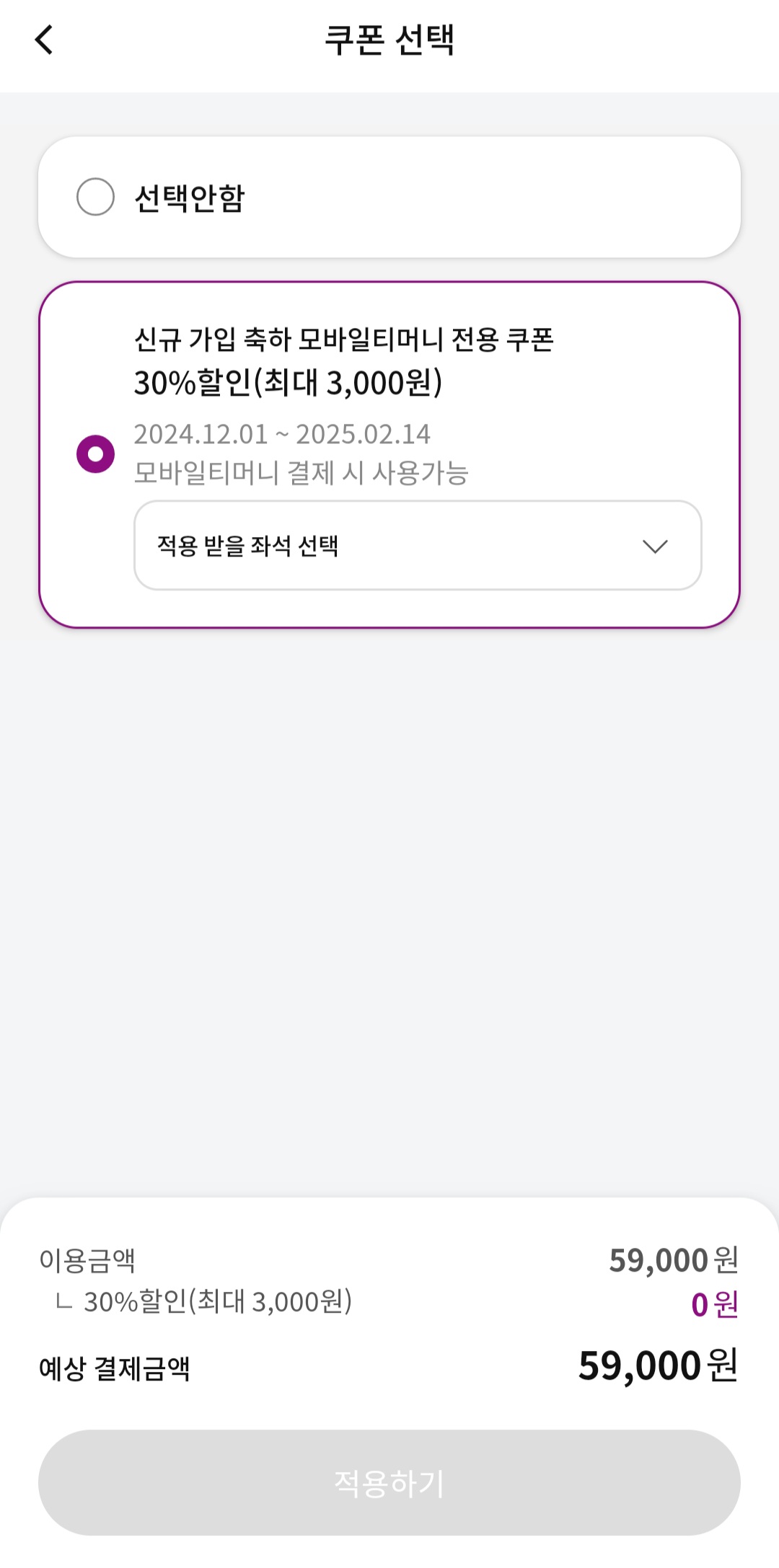 남아 있는 좌석 중 원하는 좌석을 체크합니다.