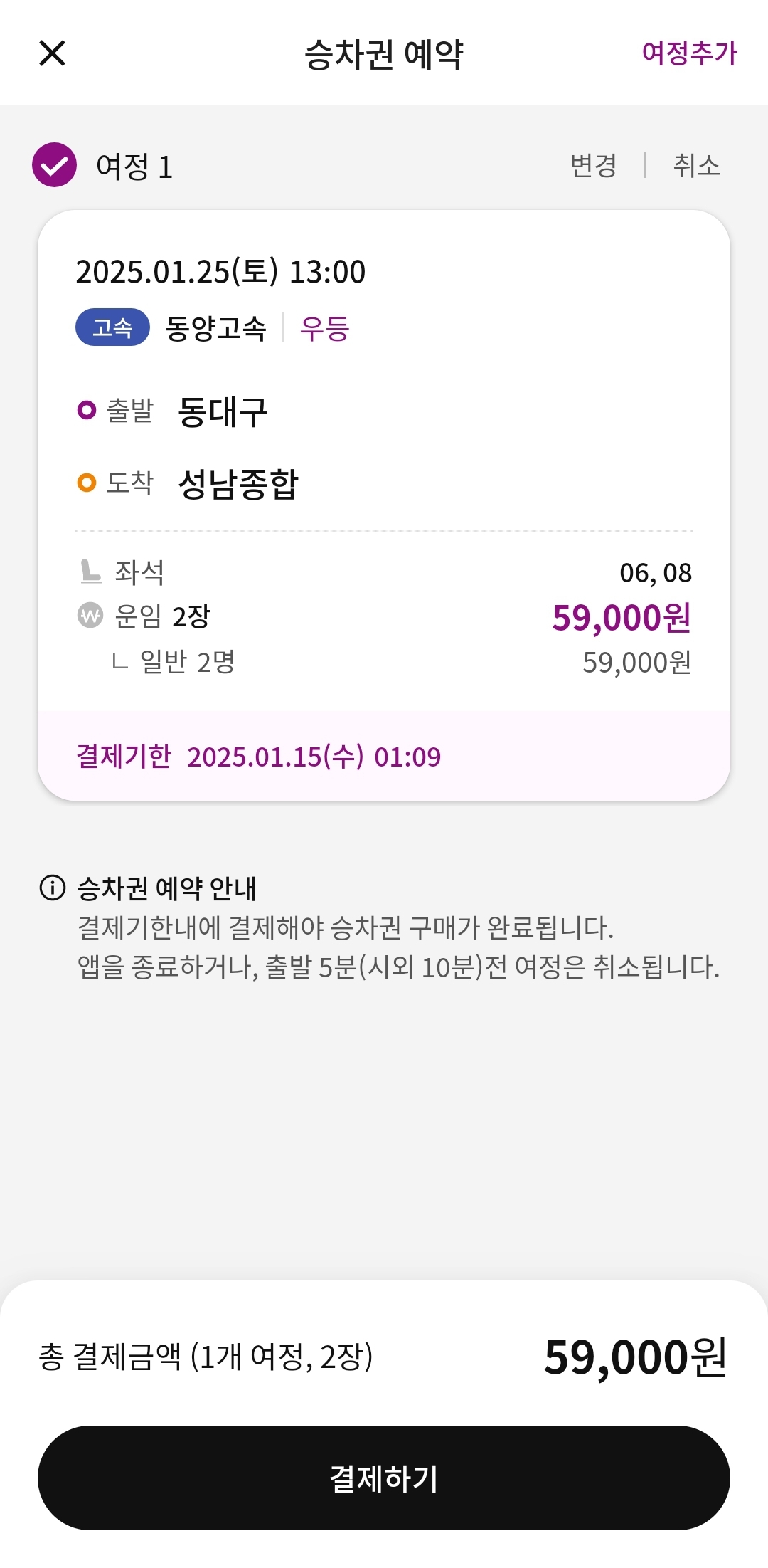 - 서울 → 동대구시외버스터미널: