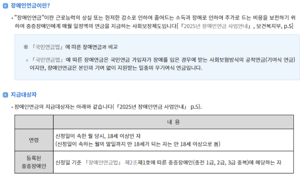 👥 장애인연금 지원 대상