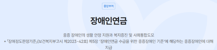 - 장애 기준: 장애인연금법상 중증장애인