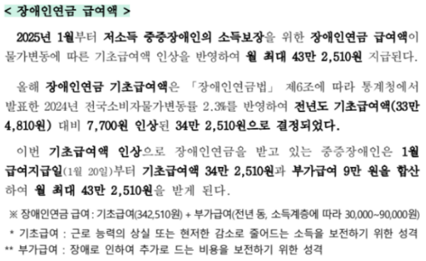 2025년부터 장애인연금 지급 금액이 인상되었습니다.